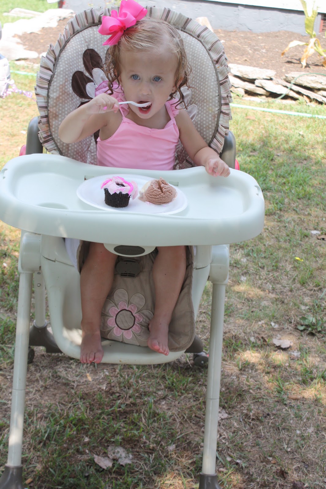 We just had here party on Saturday and it was just a real small party. We only invited grandparents and Aunts and Uncles. One of my really good friends brought a watersleide so all the kids had a blast.